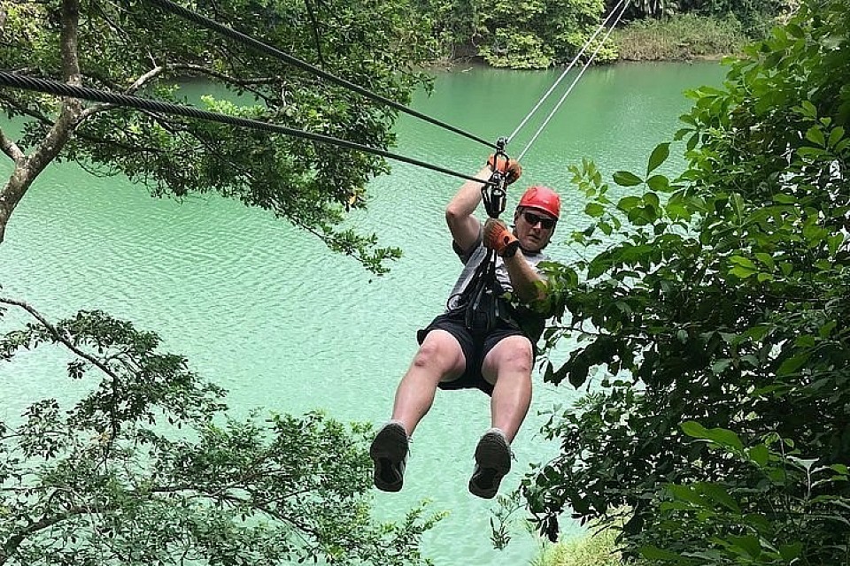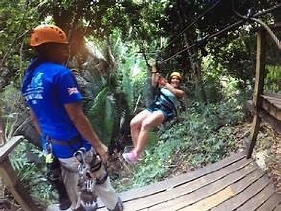 After the atv ride, you will be geared up for the thrilling ziline canopy tour. You will be ziplining through the canopy of Belize's rainforest for approximately an hour. You will also be zipping over a river. after the atv tour, you will be serviced with a local dish of rice and beans with chicken and a soda. After lunch you will be driven back to the place of tour origin.