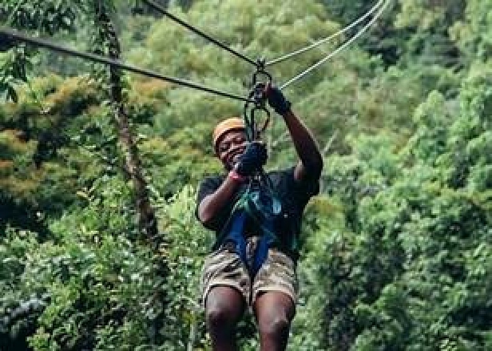 The Zip Line Adventure consists of 8 Zip Line Platforms each strategically located within the Rainforest canopy. Double cables (each capable of withstanding 2, 000 pounds of weight, the requirement for this tour truly has nothing to do with weight but with the size of the safety equipment) are used for the ultimate safety.
